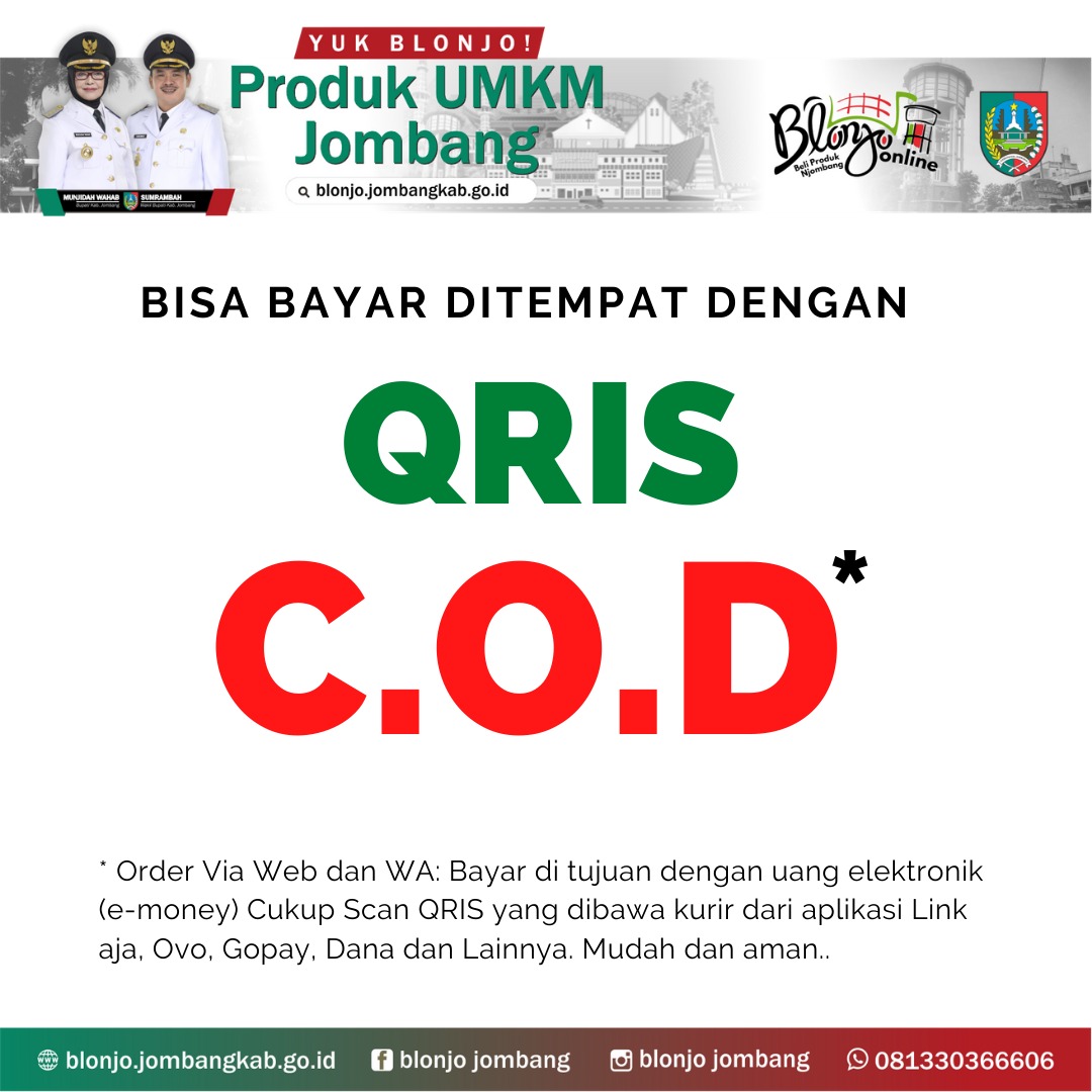Ada banyak kemudahan dan diskon belanja di aplikasi Blonjo Jombang. Dengan berbelanja di BLONJO berarti membantu perekonomian dan mendongkrak produk UMKM Jombang. Tinggal KLIK darimana saja, Barang DATANG. Pembayaran bisa melalui COD atau Cash On Delivery. Namun COD disini menggunakan sarana non tunai dengan menggunakan barcode QRIS.