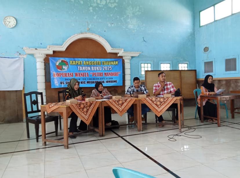 JOMBANGKAB_DINKOPUM – Koperasi Wanita (Kopwan) "Putra Mandiri" yang berbasis di Desa Sudimoro, Kecamatan Megaluh, sukses menyelenggarakan Rapat Anggota Tahunan (RAT) Tahun Buku 2025. Pertemuan penting bagi para anggota koperasi ini dilaksanakan pada Sabtu, 31 Januari 2026, bertempat di Aula Balai Desa Sudimoro.