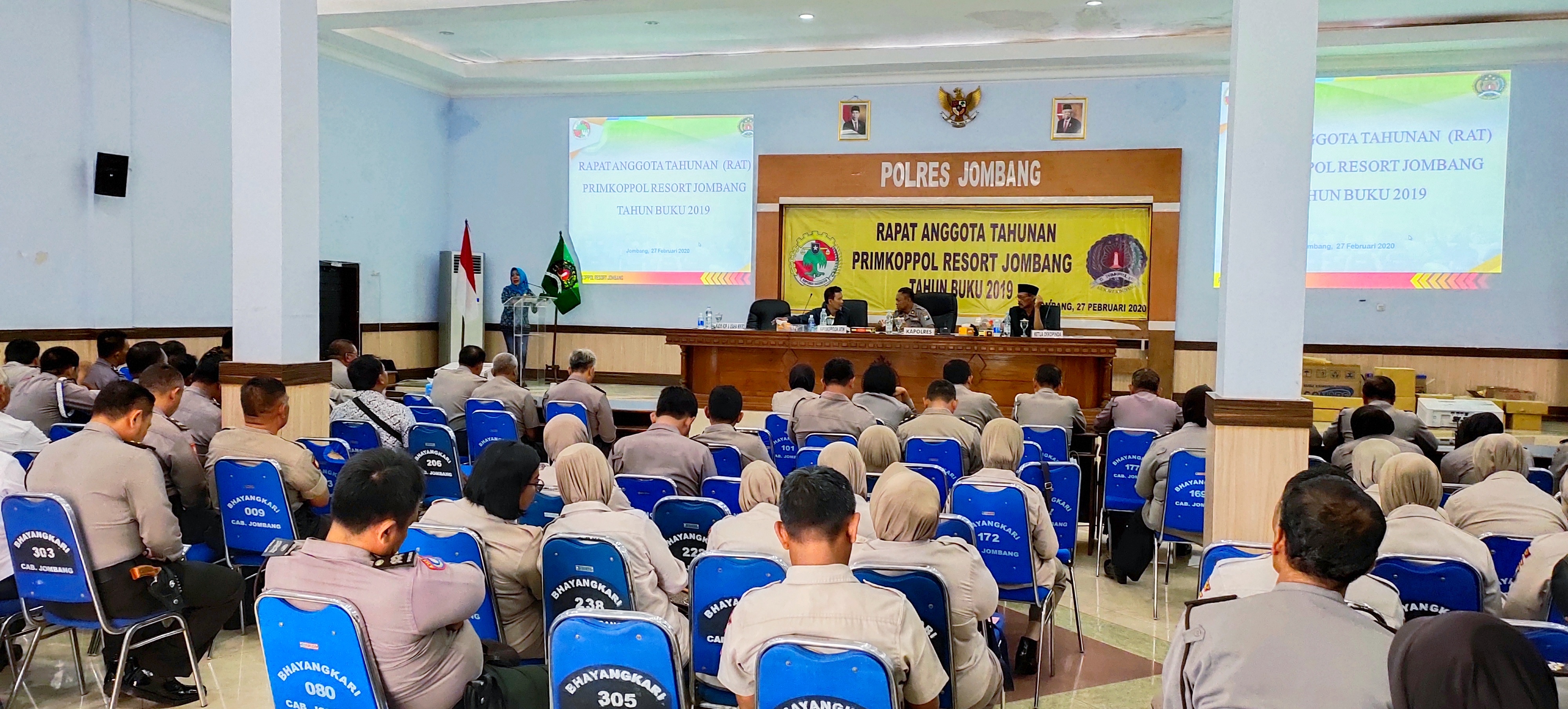 JOMBANGKAB, DINKOPUM (27/02/2020) - Primer Koperasi Kepolisian (PRIMKOPPOL) Resort Jombang melaksanakan Rapat Anggota Tahunan (RAT) tahun buku 2019. Pun demikian, pelaksanaan RAT PRIMKOPPOL tetap terhitung tepat pada waktunya dari masa akhir pelaksanaan RAT maksimal bulan April 2020.