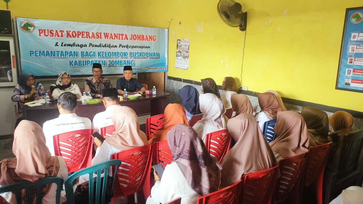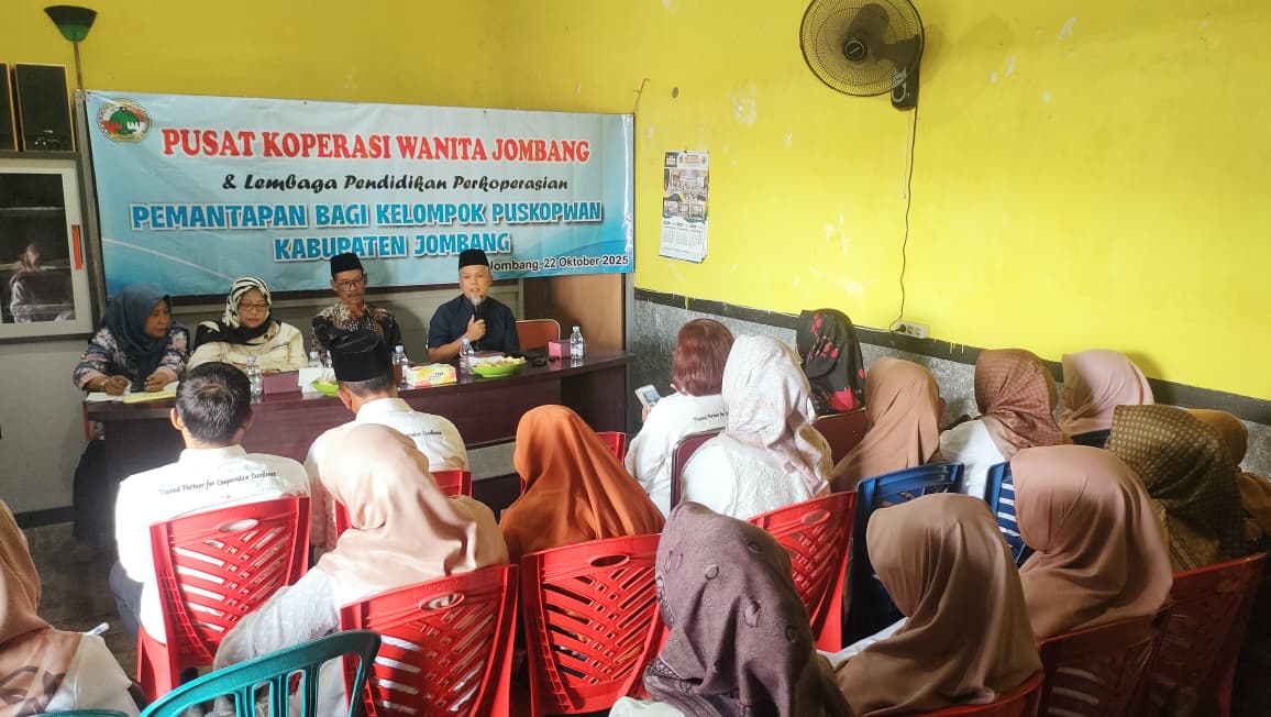 JOMBANGKAB_DINKOPUM — Dalam rangka menindaklanjuti Program Kerja Pusat Koperasi Wanita (Puskopwan) Tahun 2024 yang telah disetujui melalui Rapat Anggota Tahunan pada 27 April 2025 dan rapat kelompok pada 11 September 2025, Puskopwan Jombang menggelar kegiatan Pemantapan Kelompok Anggota pada Rabu, 22 Oktober 2025, bertempat di Kantor Puskopwan Jombang.
