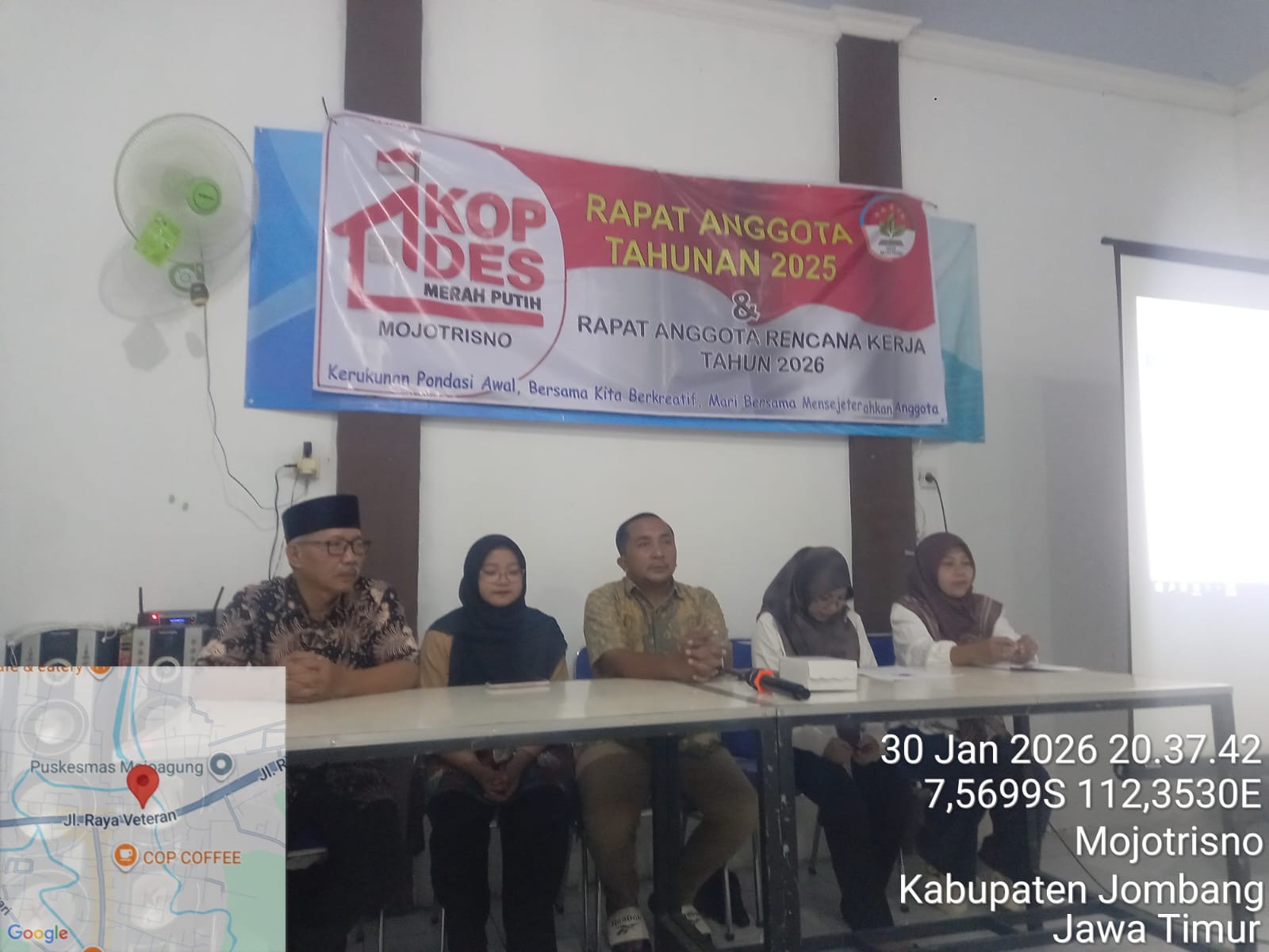 JOMBANGKAB_DINKOPUM – Koperasi Desa Merah Putih Mojotrisno, Kecamatan Mojoagung, Kabupaten Jombang, menyelenggarakan Rapat Anggota Tahunan (RAT) pada Jumat malam, 30 Januari 2026, bertempat di Gedung Serbaguna Balai Desa Mojotrisno.