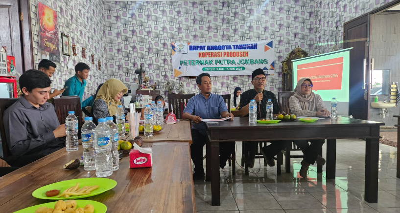 JOMBANGKAB_DINKOPUM - Koperasi Produsen Peternak Putra Jombang sukses menyelenggarakan Rapat Anggota Tahunan (RAT) Tutup Buku Tahun 2025 pada hari ini, Kamis, 24 April 2026. Kegiatan yang menjadi pemegang kekuasaan tertinggi dalam koperasi ini dilaksanakan di Warung Rejoso, Jalan Dokter Soetomo No. 24, Serning, Banjaragung, Kecamatan Bareng. Agenda rutin tahunan ini merupakan perwujudan transparansi dan akuntabilitas pengurus dalam melaporkan pertanggungjawaban kinerja selama satu tahun periode berjalan kepada seluruh anggota.