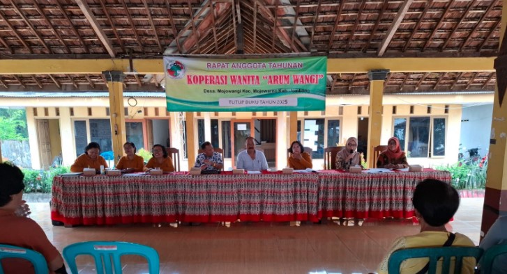 JOMBANGKAB_DINKOPUM – Koperasi Wanita (KOPWAN) "ARUM WANGI" Desa Mojowangi secara resmi menyelenggarakan Rapat Anggota Tahunan (RAT) Tutup Buku Tahun Buku 2025. Kegiatan ini dilaksanakan pada Jumat (30/1/2026) bertempat di Pendopo Desa Mojowangi, Kecamatan Mojowarno.