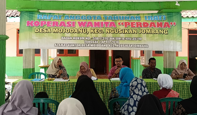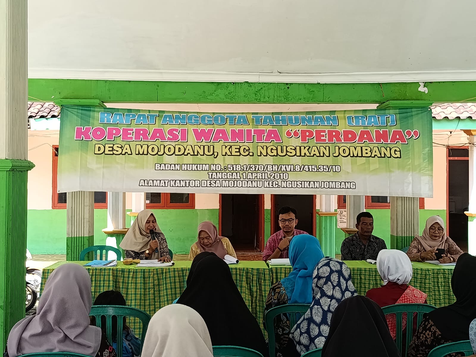 JOMBANGKAB_DINKOPUM – Koperasi Wanita (Kopwan) "Perdana" Desa Mojodanu, Kecamatan Ngusikan, sukses menyelenggarakan Rapat Anggota Tahunan (RAT) untuk Tahun Buku 2025 pada hari Sabtu, 25 April 2026. Acara yang berlangsung di balai desa setempat ini menjadi momentum penting bagi para pengurus dan anggota untuk mengevaluasi kinerja serta merancang strategi pengembangan koperasi di masa mendatang. Kehadiran para anggota yang antusias menunjukkan kuatnya komitmen warga Mojodanu dalam menjaga keberlangsungan ekonomi kerakyatan melalui wadah koperasi.