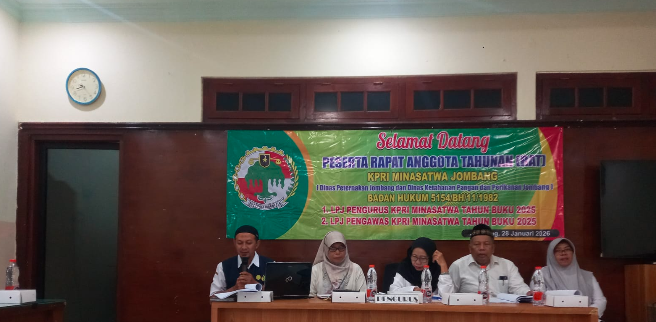 JOMBANGKAB_DINKOPUM – Koperasi Pegawai Republik Indonesia (KP-RI) “Mina Satwa” Kabupaten Jombang menyelenggarakan Rapat Anggota Tahunan (RAT) Tahun Buku 2025 pada Rabu (28/01/2026) pukul 09.00 WIB bertempat di Ruang Rapat Etawa Dinas Peternakan Kabupaten Jombang.