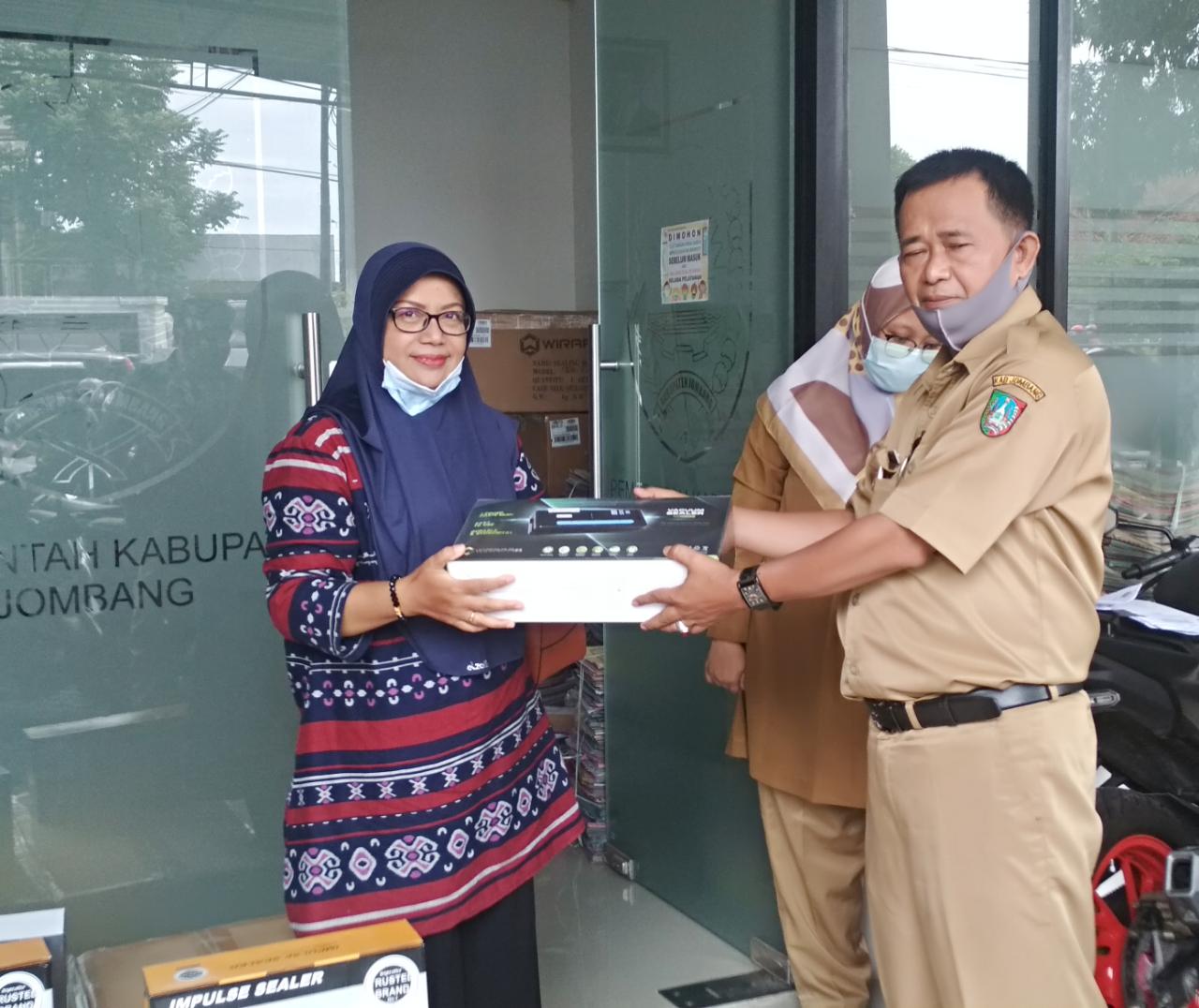 JOMBANGKAB, DINKOPUM (17/12/2020) - Dalam rangka peningkatan kapasitas produksi dengan tetap menjaga mutu, Dinas Koperasi dan Usaha Mikro Kabupaten Jombang memberikan peralatan produksi berupa mesin sealer otomatis dan manual juga vacuum sealer untuk produk tertentu. Ada sekitar 25 pelaku usaha mikro dari 11 asosiasi di Jombang yang mendapatkan bantuan tersebut.