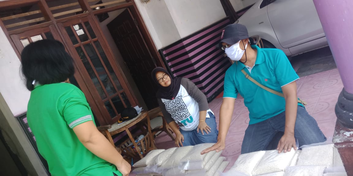 Penyaluran bansos dilakukan langsung kepada masyarakat dengan tetap menerapkan protokol social distancing.