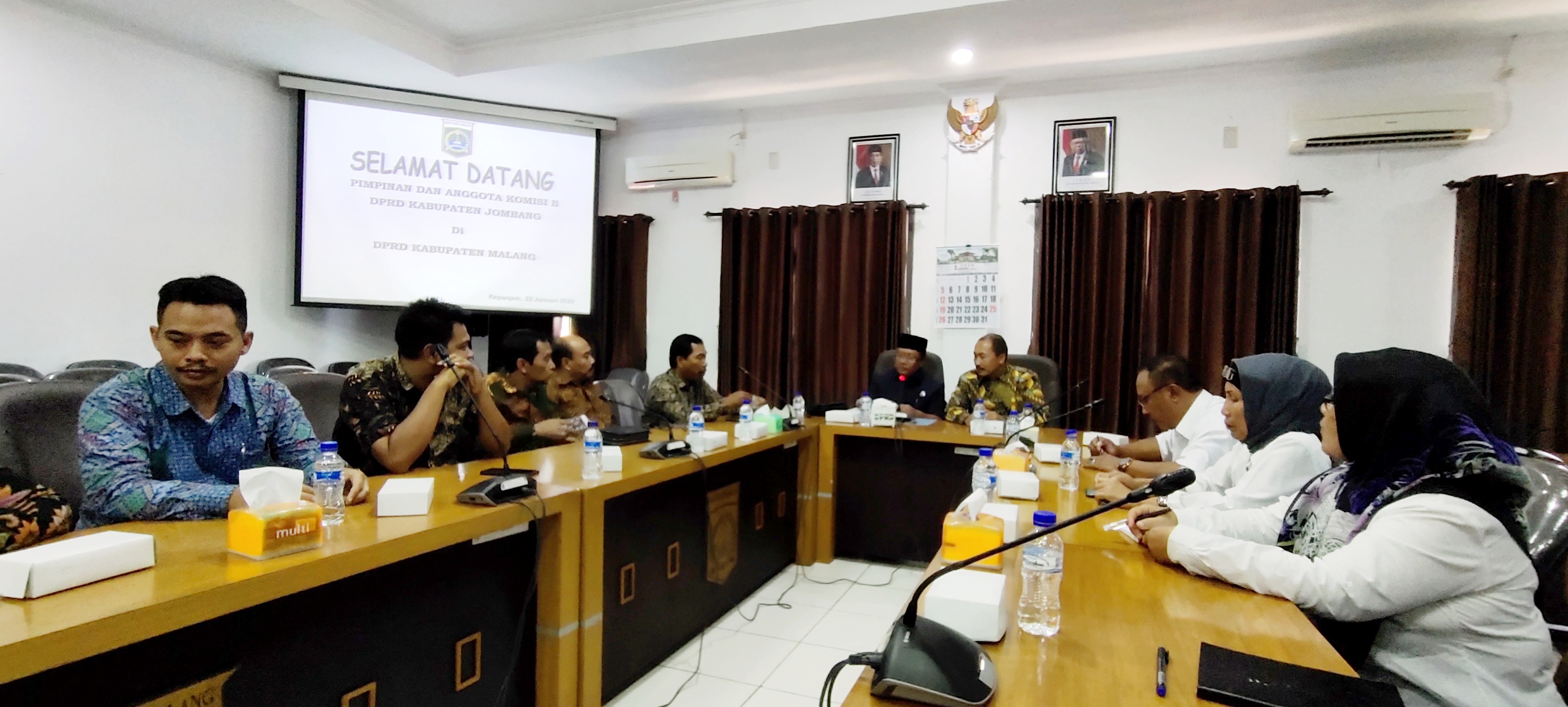 DPRD Kabupaten Jombang khususnya Komisi B bersama Pemerintah Kabupaten Jombang, yang dalam hal ini diwakili oleh Bappeda, Bidang Perekonomian Setdakab Jombang, Dinas Koperasi dan UM, Dinas Penanaman Modal dan PTSP dan Dinas Pertanian, melakukan kunjungan kerja ke DPRD Kab. Malang dalam rangka Perlindungan Konsumen dan Pengembangan Produk UMKM.