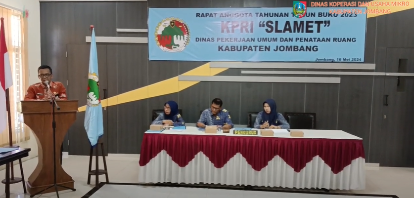 JOMBANGKAB_DINKOPUM - KPRI "SLAMET" sukses menggelar Rapat Anggota Tahunan (RAT) untuk tahun buku 2023. Acara ini berlangsung dengan penuh hikmat dan dihadiri oleh berbagai tokoh penting, termasuk perwakilan dari Dinas Pekerjaan Umum dan Penataan Ruang Kabupaten Jombang, serta Dinas Koperasi dan Usaha Mikro Kabupaten Jombang.
