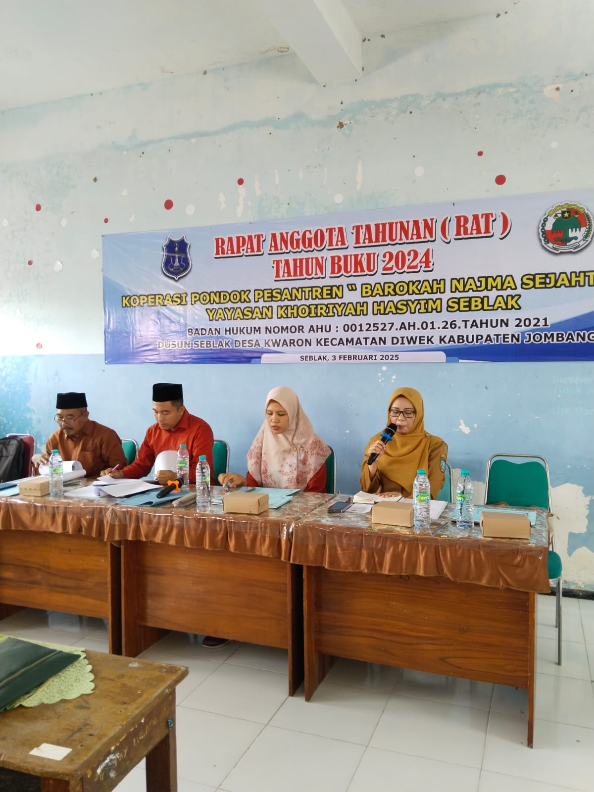 JOMBANGKAB_DINKOPUM – Koperasi Pondok Pesantren "Barokah Najma Sejahtera" menggelar Rapat Anggota Tahunan (RAT) Tahun Buku 2024 pada Senin (03/02/2025). Acara yang berlangsung di Gedung L MA. Salafiyah Syafi'iyah Seblak Desa Kwaron, Kecamatan Diwek, Kabupaten Jombang ini dimulai pukul 10.00 WIB hingga selesai.