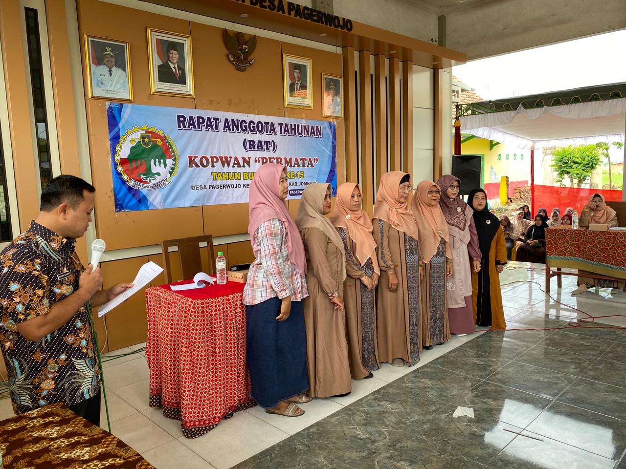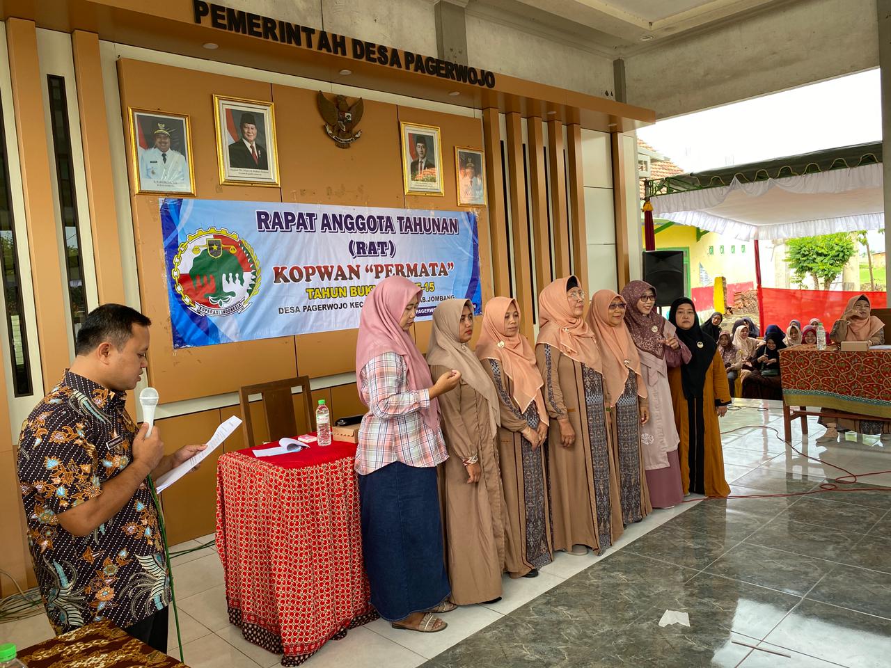 JOMBANGKAB_DINKOPUM — Koperasi Wanita “Permata” Desa Pagerwojo, Kecamatan Perak, Kabupaten Jombang, melaksanakan Rapat Anggota Tahunan (RAT) Tahun Buku 2025 pada Kamis, 15 Januari 2026, bertempat di Balai Desa Pagerwojo, Kecamatan Perak. Kegiatan ini dihadiri oleh Fatkur Rozik, S.HI., Penata Layanan Operasional, dan Purnomo Yulianto, A.Md.T., Pengelola Layanan Operasional selaku perwakilan dari Dinas Koperasi dan Usaha Mikro Kabupaten Jombang.