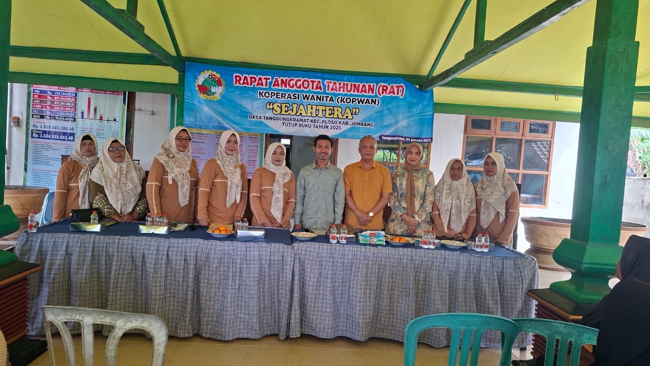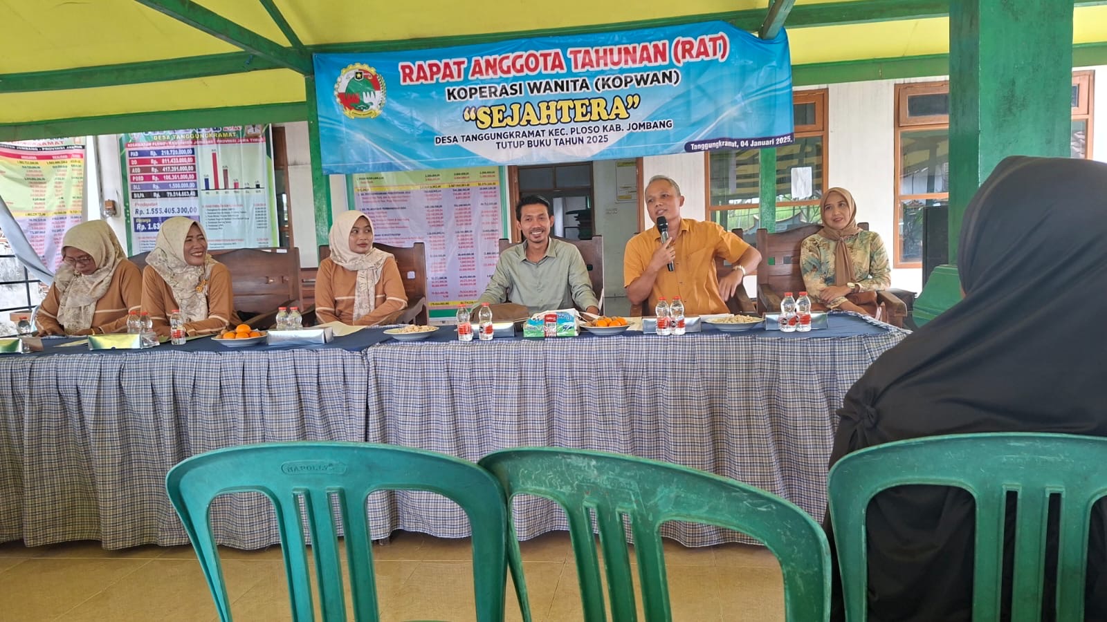 JOMBANGKAB_DINKOPUM – Koperasi Wanita (Kopwan) Sejahtera Desa Tanggungkramat, Kecamatan Ploso, Kabupaten Jombang, menyelenggarakan Rapat Anggota Tahunan (RAT) Tahun Buku 2025 pada Sabtu, 4 Januari 2026, bertempat di Balai Desa Tanggungkramat.