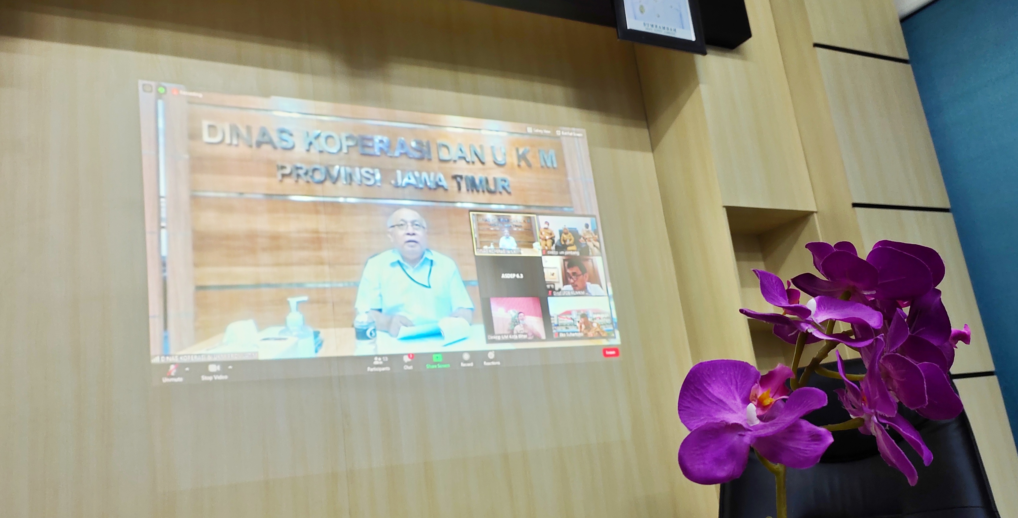 Kegiatan Webinar diikuti dari seluruh Dinas Koperasi se-Jawa Timur dimana Dinas Koperasi dan UKM Propinsi Jawa Timur hadir sebagai Host agenda Webinar. Diikuti juga dari LPDB RI dan perwakilan Kemenkop Republik Indonesia. (*) TWD/AK